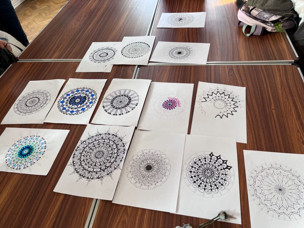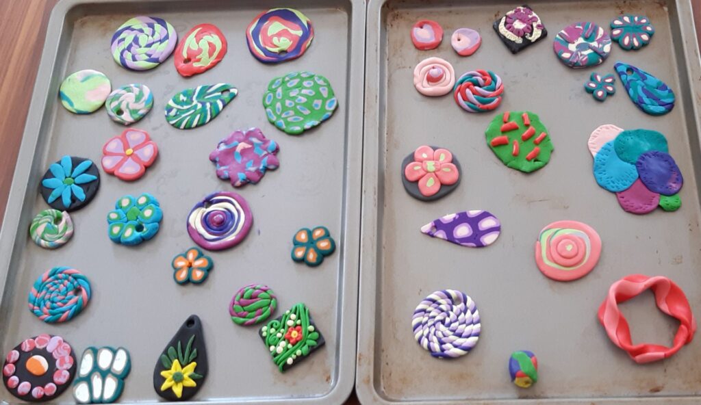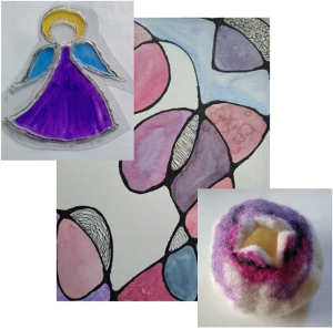 We meet each month to try a new craft project or repeat one enjoyed previously. Over the last few months we have made small books, done some weaving, played with FIMO, participated in mindful drawing- made fabric paper tealights etc. Each session is led by a volunteer and we aim to share our ideas to take some new creation away each month.