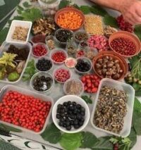 The picture is of seeds, berry’s and husks which are the fruits of some of the plants that we saw. (Click to enlarge)